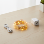 Length: 33 ft (10m) with 100 micro-LEDs. Power Source: USB 5V. Light Color: Warm White (2700K). Wire Color: Copper.